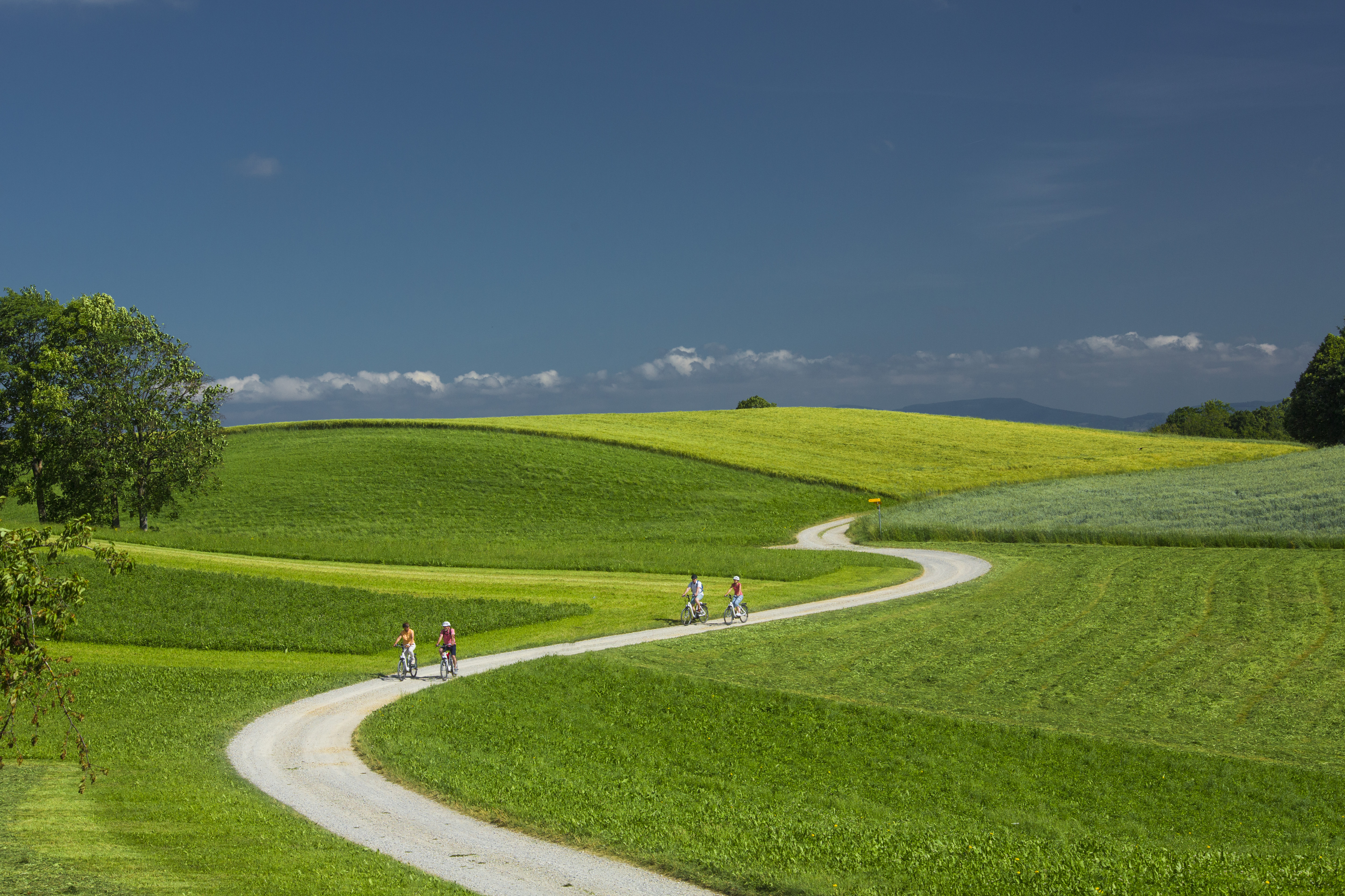 Hügu Himu bietet Ihnen ein Set der schönsten E-Bike-Touren der Schweiz. Auf über 450 Kilometer bestens beschilderten Strecken flanieren Sie dank E-Power genussvoll um und über die Hügel im Emmental . Dabei wechseln sich famose Ausblicke, prächtige Emmentaler Höfe, lauschige Gaststätten und gut gelaunte Kühe ab. Satteln Sie Ihr E-Bike, tauchen Sie ein und entdecken Sie den Hügu Himu.
