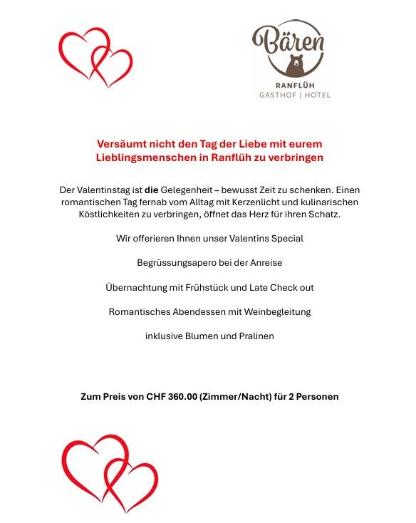 Doppelzimmer (180x200cm)mit Frühstücksbuffet | CHF 170.00 |