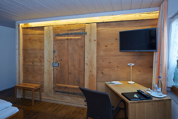 Einst im Stadthaus auf die Idee, Zimmer anzubieten, ist Doris Grossen nicht von ungefähr gekommen. Regelmässig habe sie Anfragen per Telefon bekommen oder dann hätten Leute auf der Durchfahrt angehalten und sich erkundigt , erzählt sie. Die Wirtin, die den Gasthof im Winter 2007 gemeinsam mit ihrem Ehemann Heinz gekauft hat, kennt sich in der Hotelbranche aus. Sieben Jahre lang war sie in der Burgdorfer Stadthaus-Gruppe tätig, führte dort während zweier Jahre sogar das Viersternehotel Stadthaus mit seinen 18 Zimmern. Die Liebe zum Detail «Der Bären ist zwar kein Hotel, und er hat auch keine Sterne, trotzdem schaue ich auf Details», erklärt Doris Grossen. So findet jeder Gast bei der Ankunft Obst und eine Flasche Wasser im Zimmer vor.