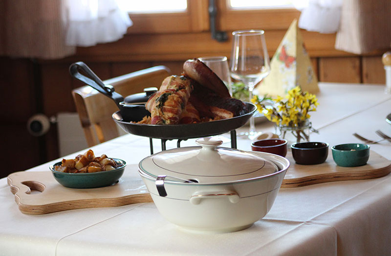 We cook to fit your requirements and are happy to tempt you with our menu suggestions. These should be understood as ideas. On request, we can also cook your favourite dishes. Changes are of course possible after consultation. Because we shop and cook fresh ingredients, we can only serve one menu per group. (Exceptions for vegetarians are possible).