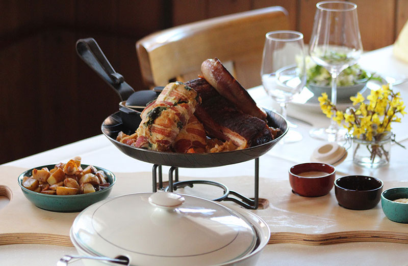 «Einisch chli öppis angers» – geniessen Sie feines Fleisch in grossen Stücken. Jeder nimmt sich aus der Pfanne was er gerne möchte.